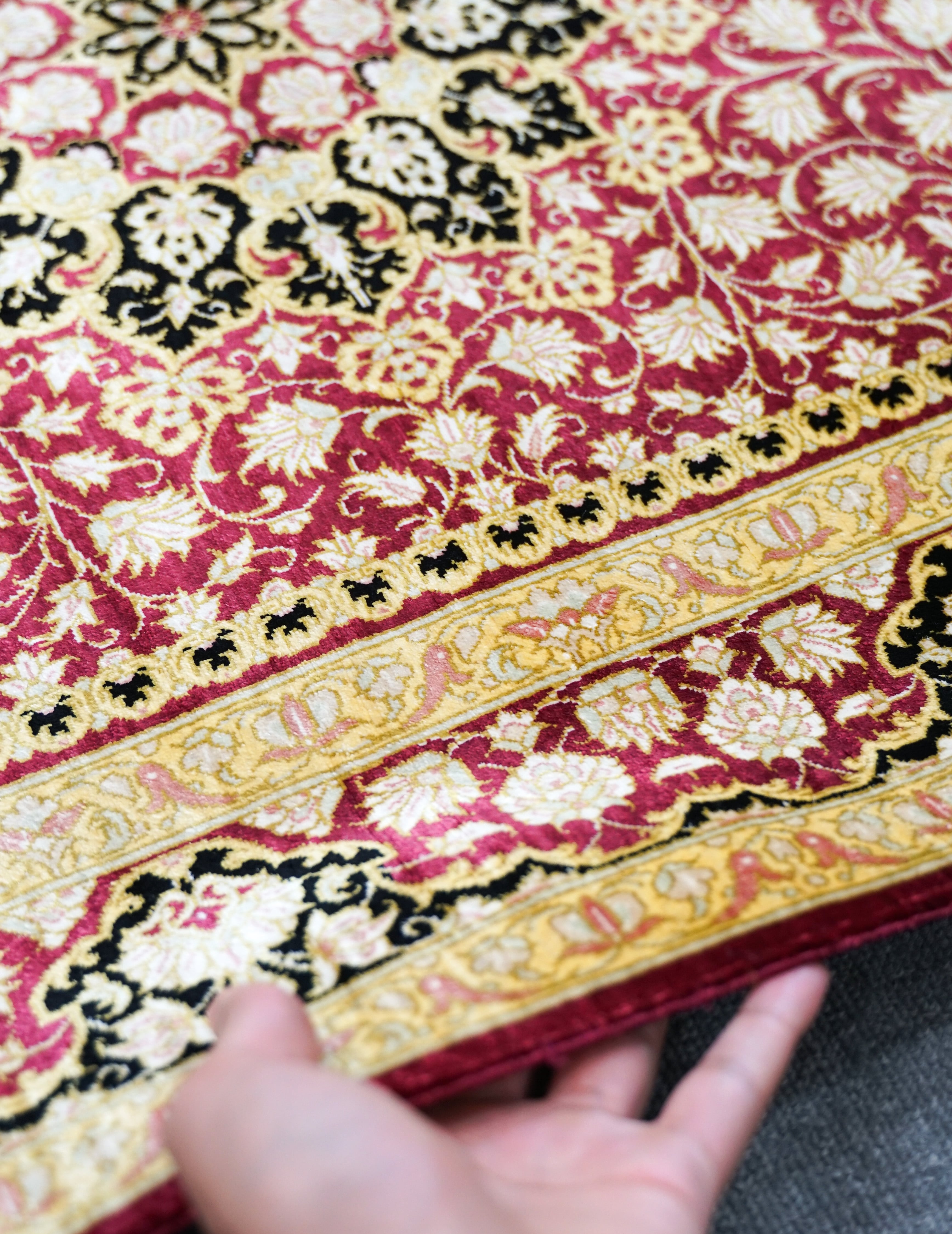 世界的な人気を誇るペルシャ クム産の総手織りシルク絨毯。