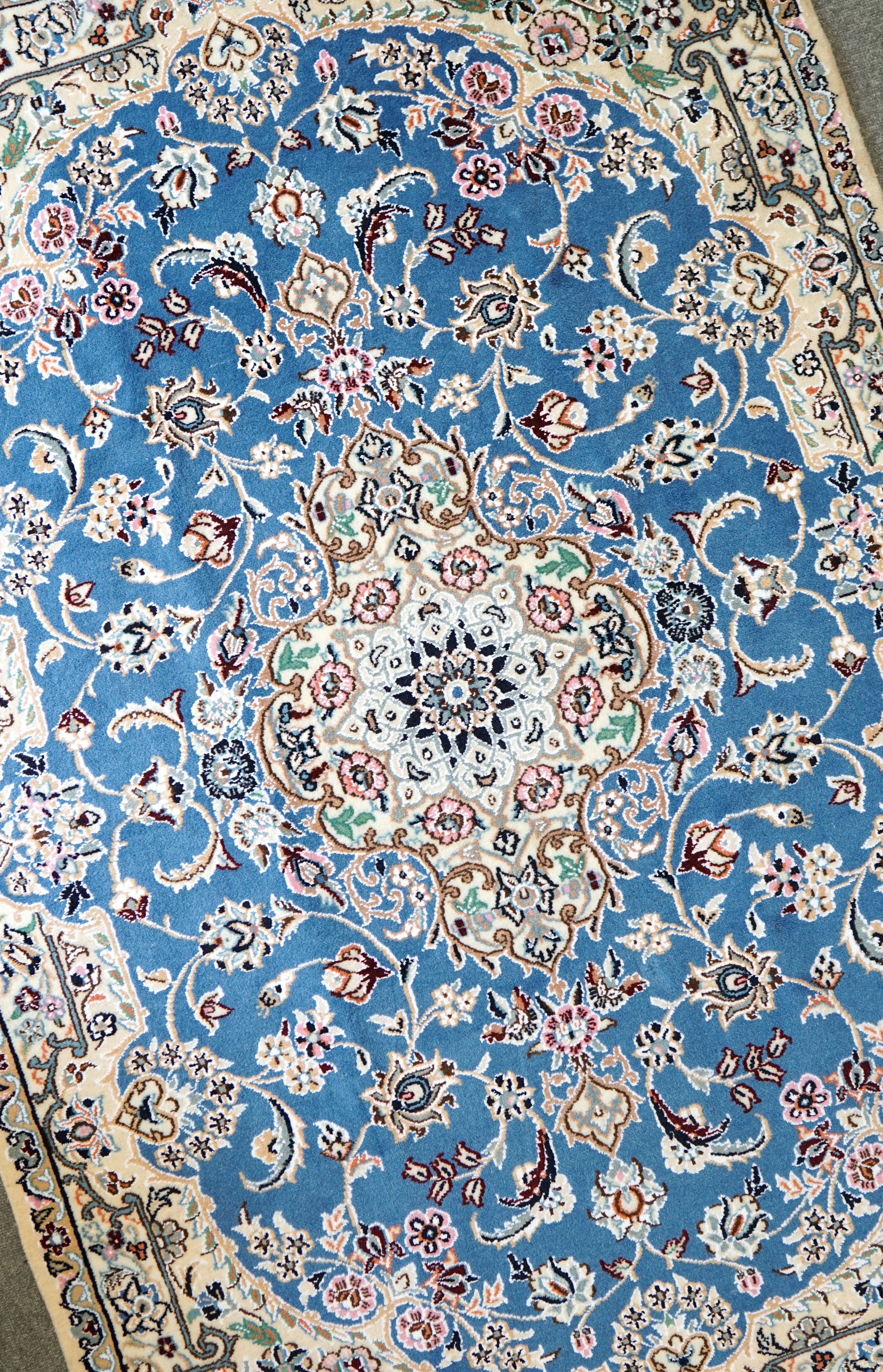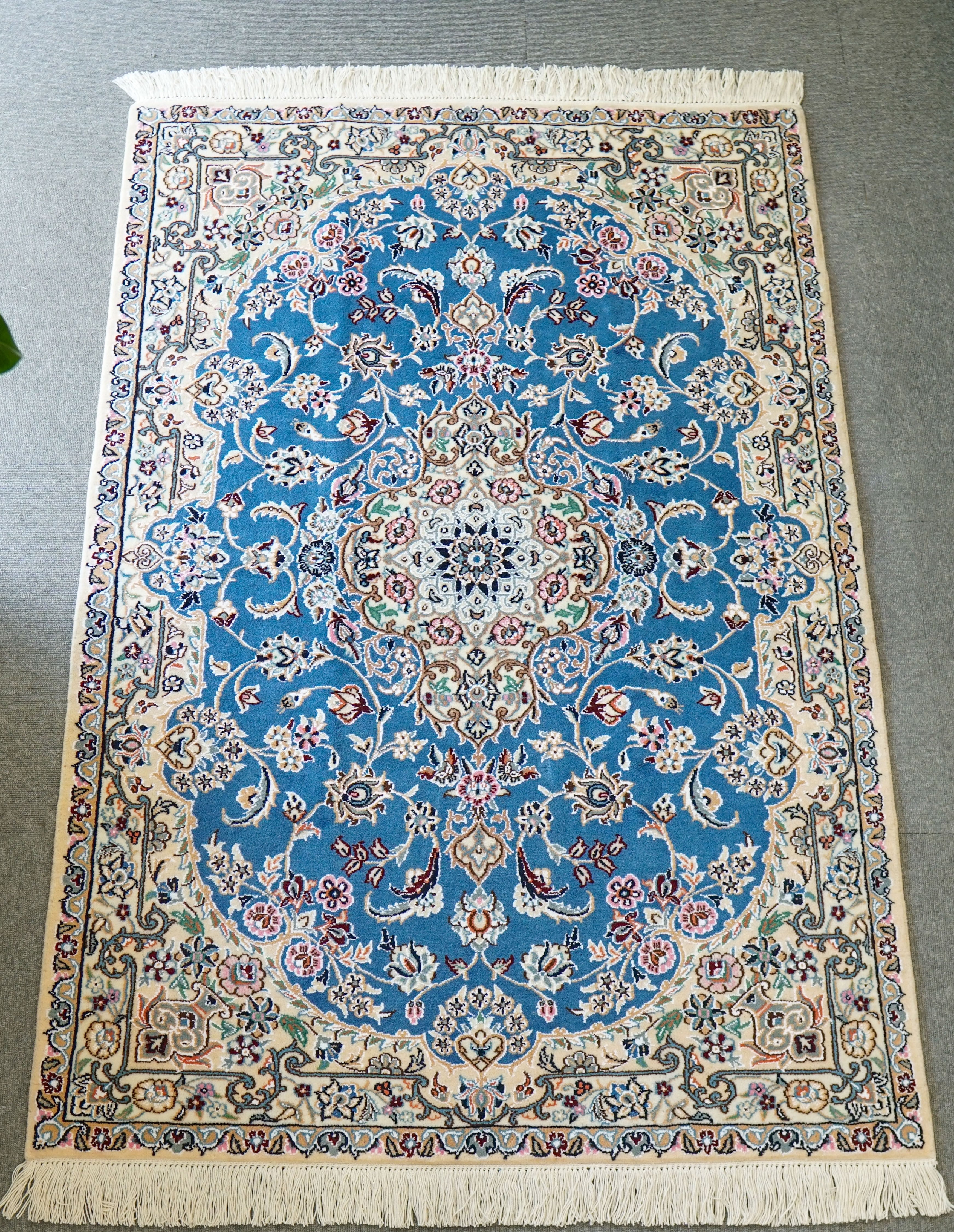 コールクウールという生まれて1年以内の子羊から刈り取った貴重なウールとシルクで織り上げた大変柔らかい絨毯です。しなやかで、大きいサイズですが比較的女性や年配の方でも扱いやすいです。