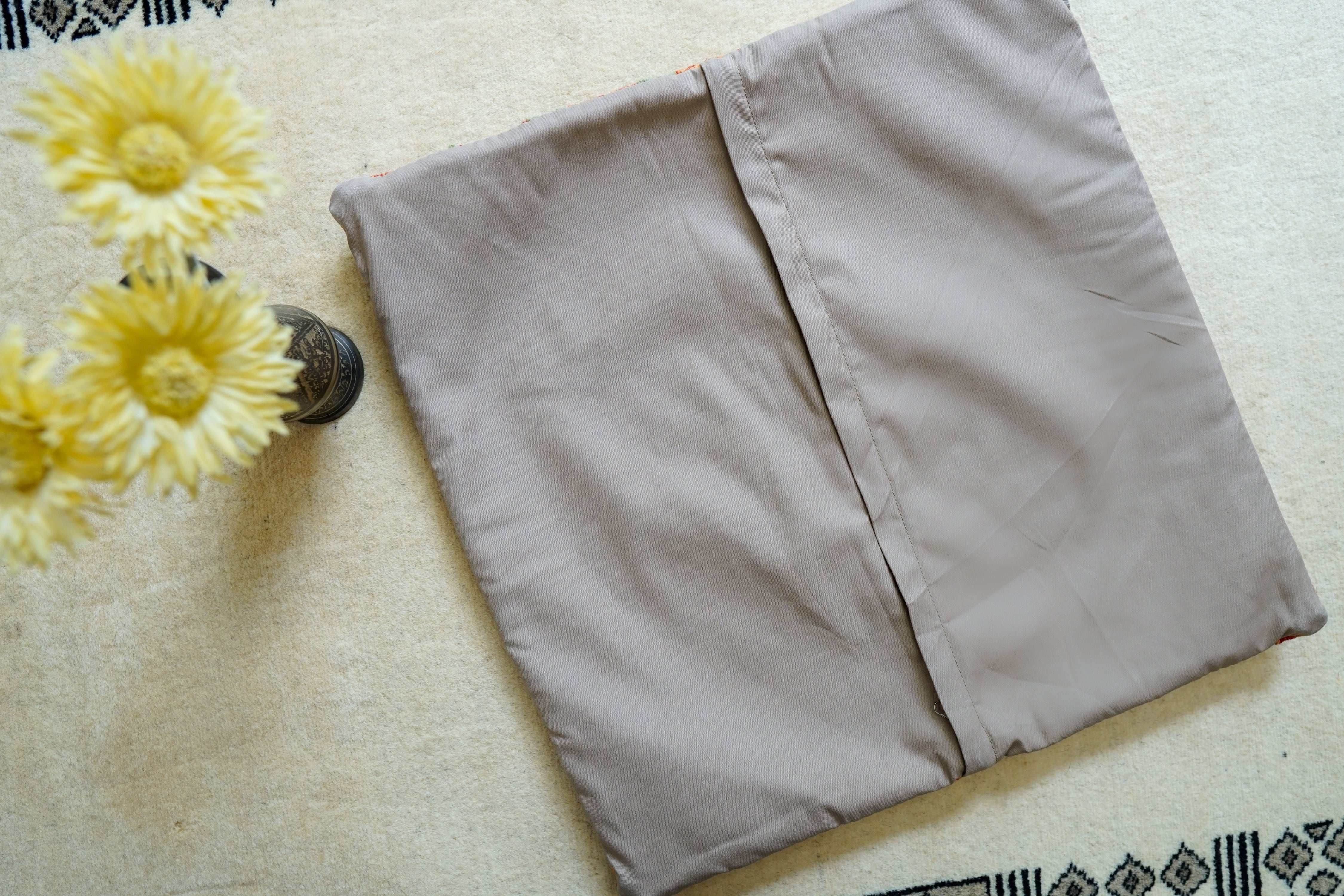 表は100%ウールで織ったキリム素材、裏はコットン素材です。