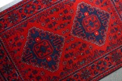 アフガン絨毯の中でも人気の高い『Khal Mohammadi(カールモハメディ)』は、耐久性に優れ、アフガニスタン産の中では最良品質といわれています。深みのある赤色とブラックの落ち着いた色合いが特徴で、シンプルな色数にすることで高級感が高まり洗練された雰囲気を宿します。あえて艶を抑えることで色の深みをより楽しめる仕上がり。