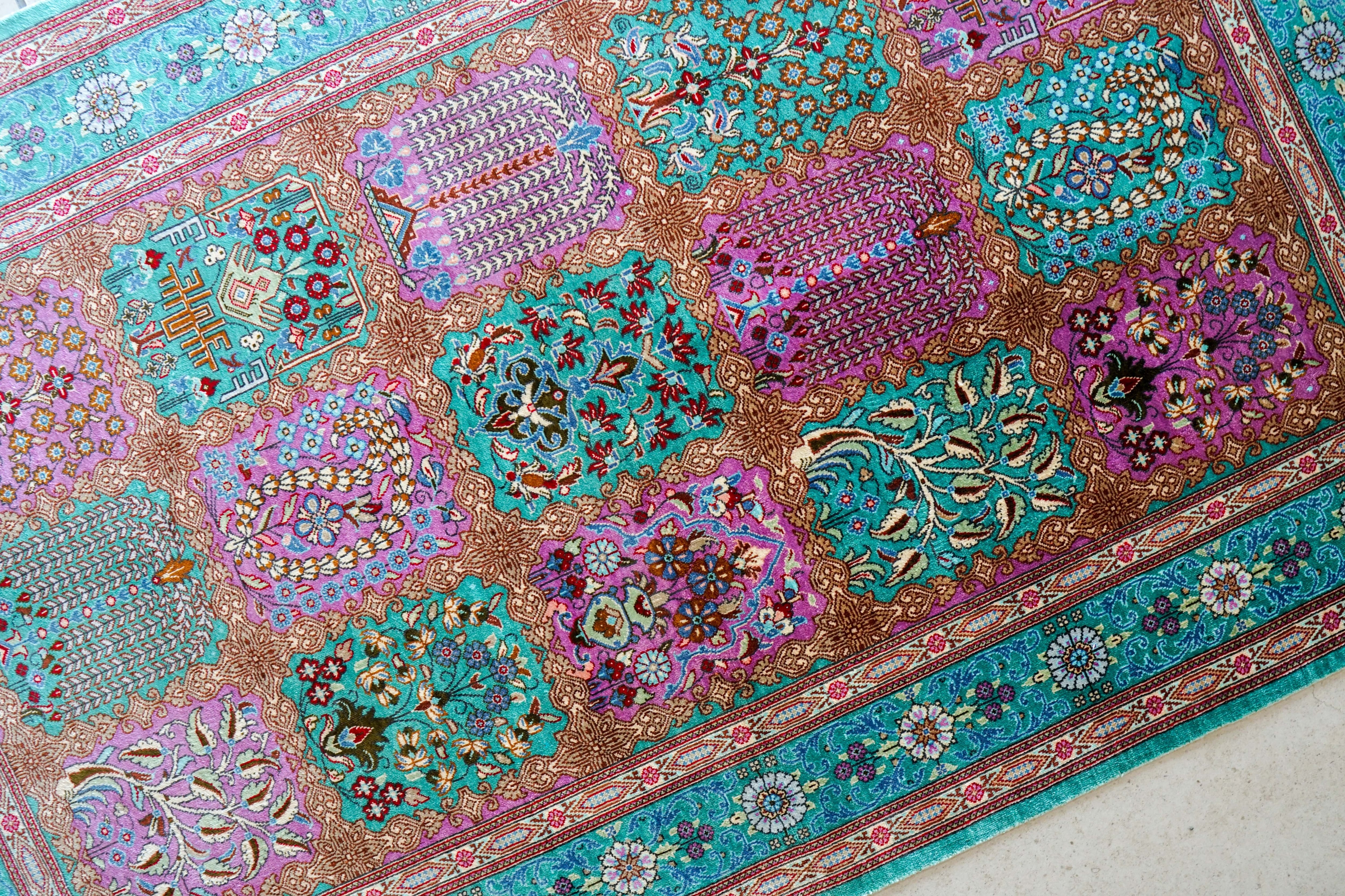 世界的な人気を誇るペルシャ クム産の総手織りシルク絨毯。