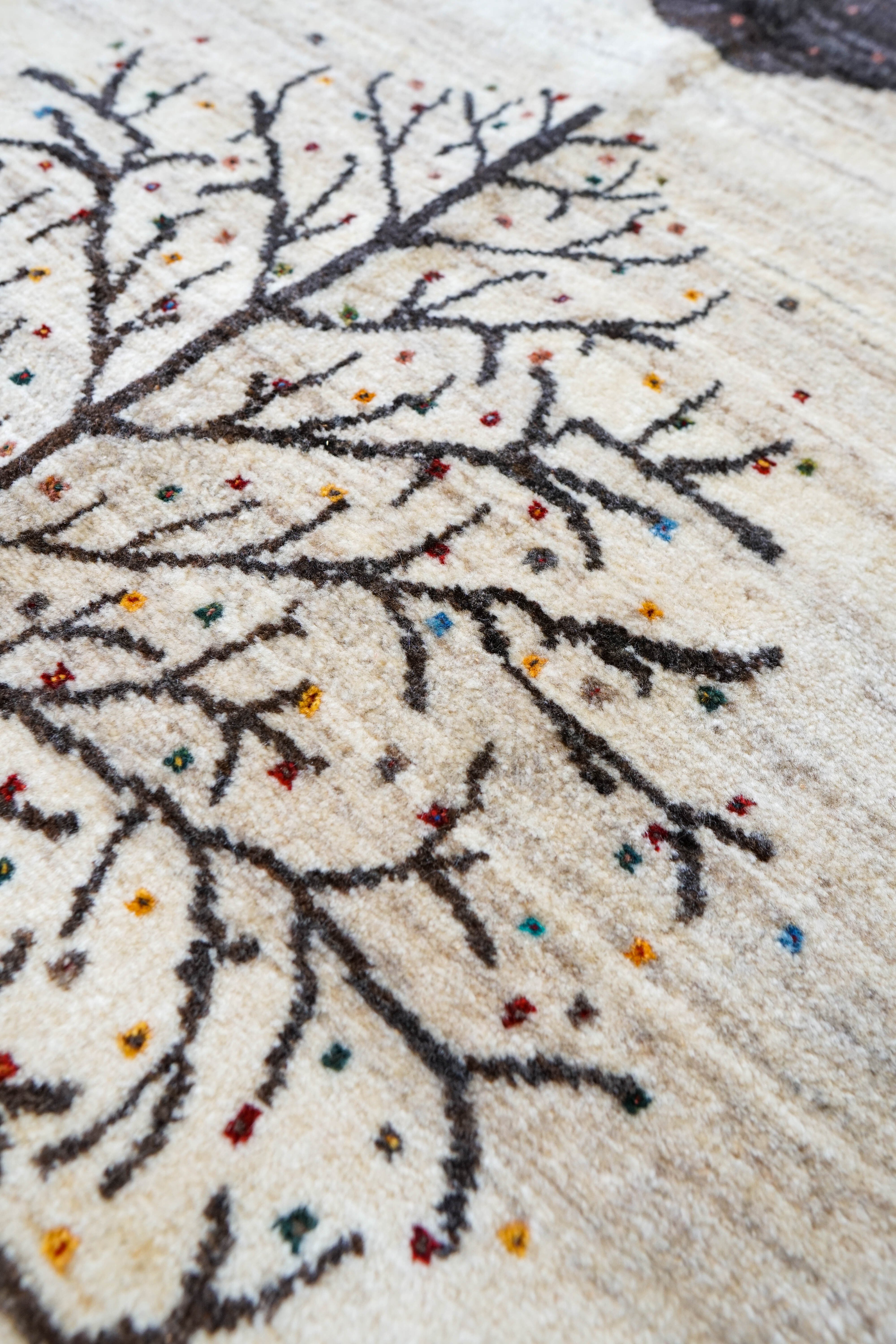 手織り絨毯は全て一点物ですので現品限りです。店頭でも販売しているため先着順となりますこと予めご了承ください。