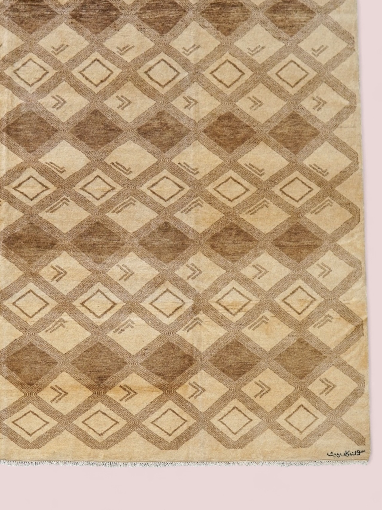 ウール本来の色味を活かしたナチュラルなカラーで、どんなお部屋にも馴染みやすい落ち着いた色合い。トランジとよばれるひし形には『魔除け』の力が宿るとされ、伝統的で人気の高い柄です。