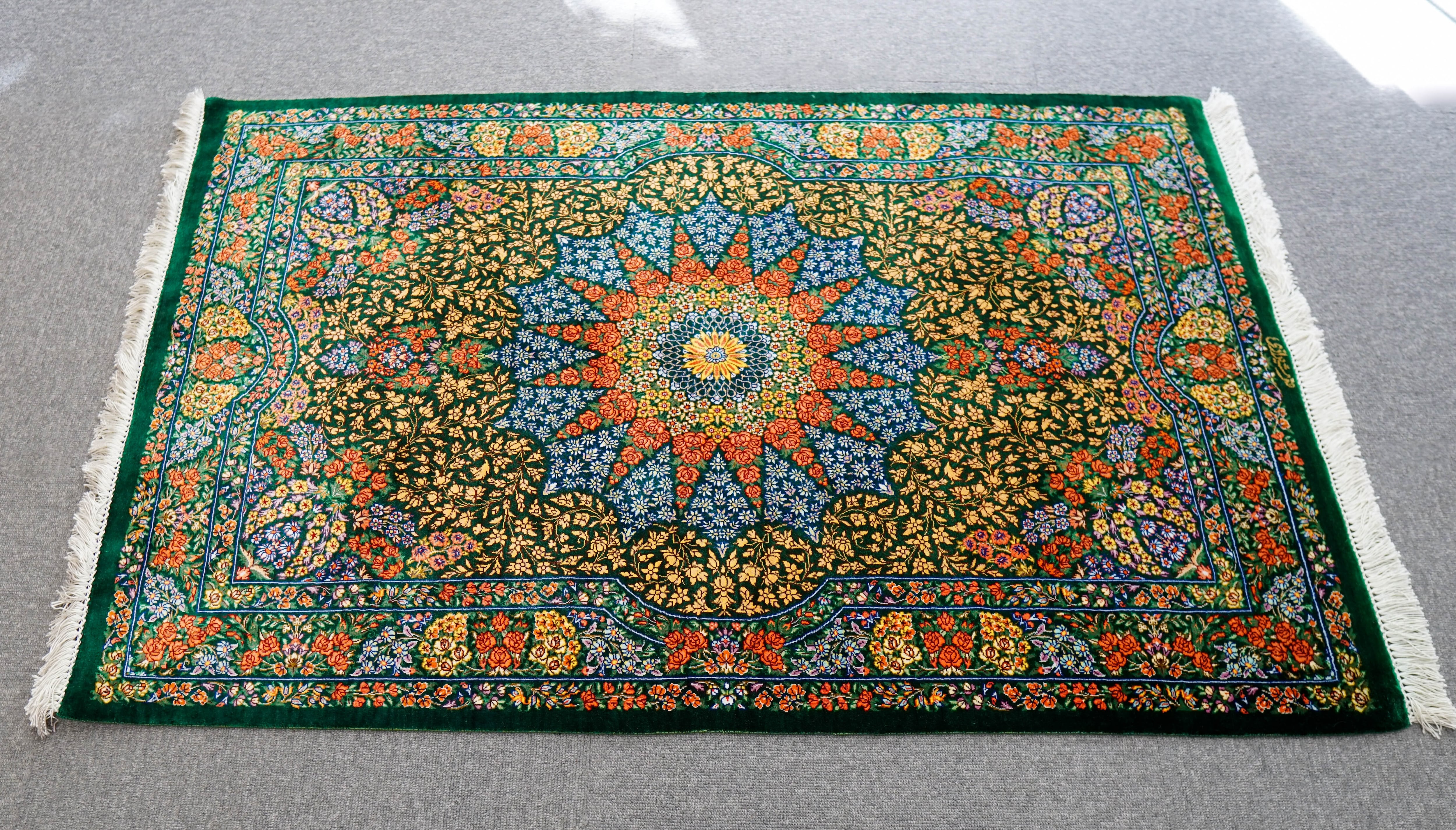 世界的な人気を誇るペルシャ クム産の総手織りシルク絨毯。