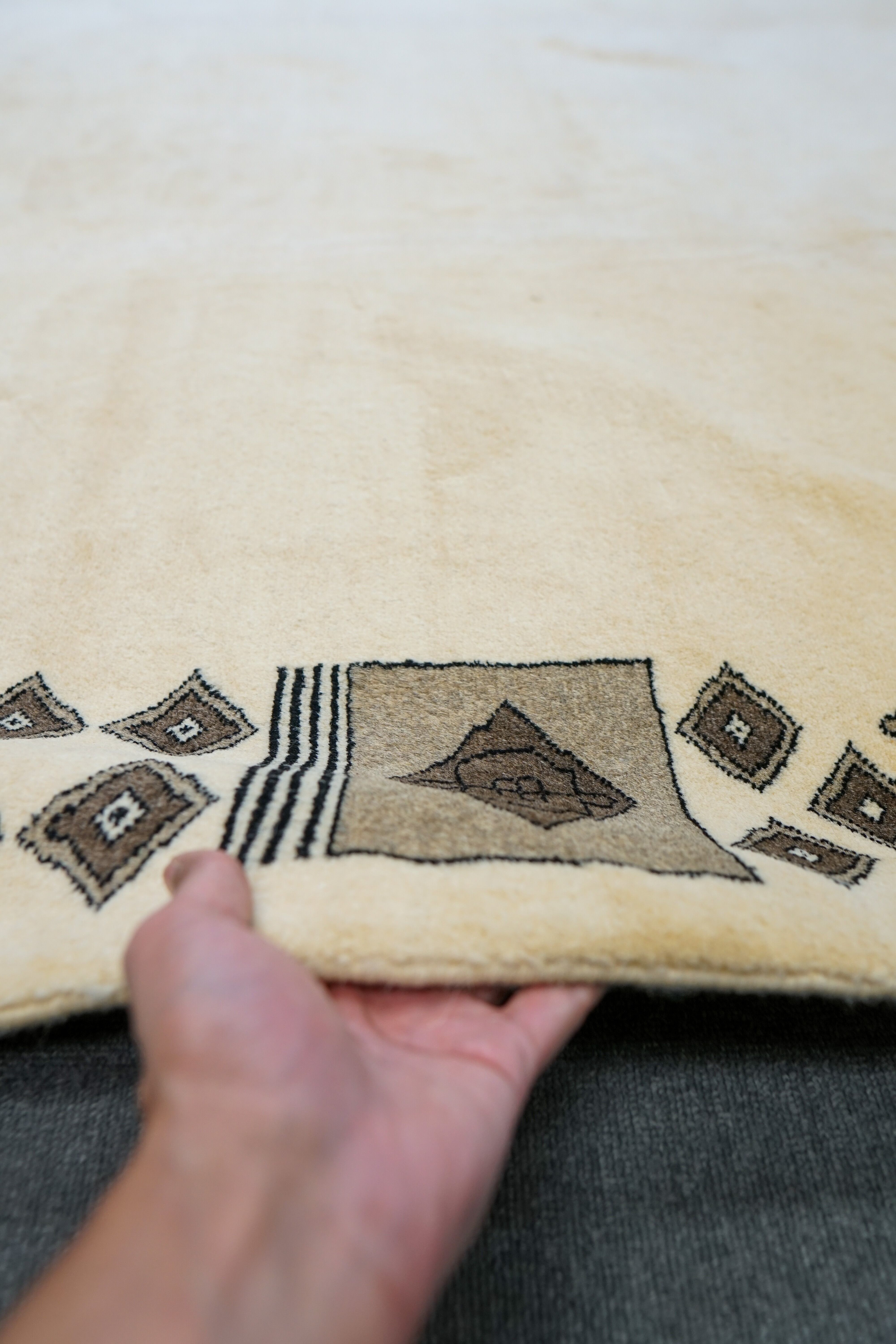 上質なウールに草木染めを施し、信頼できる熟練した職人が手織りしたパキスタン絨毯です。しなやかで扱いやすく、弾力のある柔らかいパイル地が底冷えを防ぎ足元を快適にします。