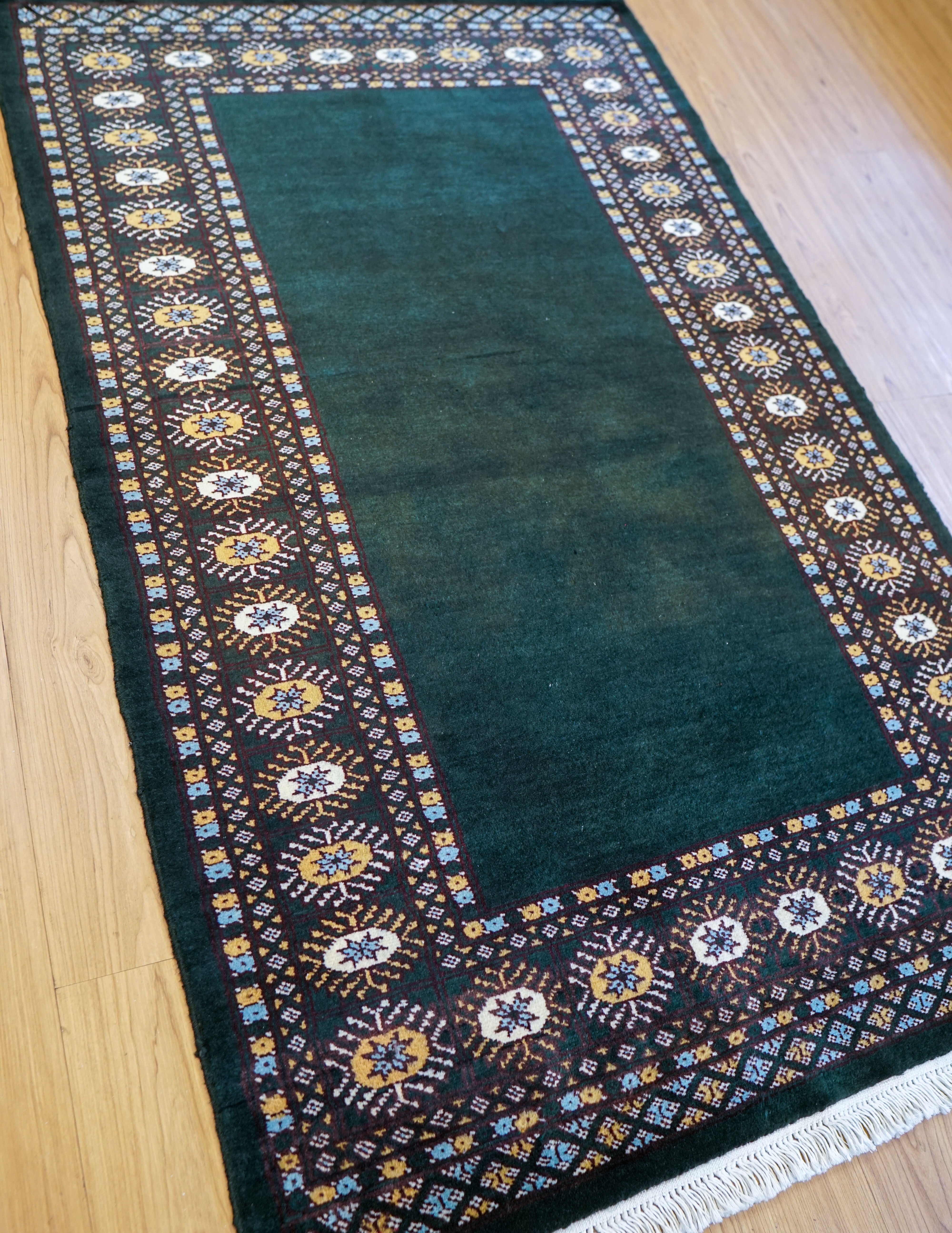 ニュージーランド産の高品質ウールを使用し、手織りで作り上げたパキスタン絨毯です。肌触りはなめらかで柔らかく、表面にはハリ・ツヤがあります。