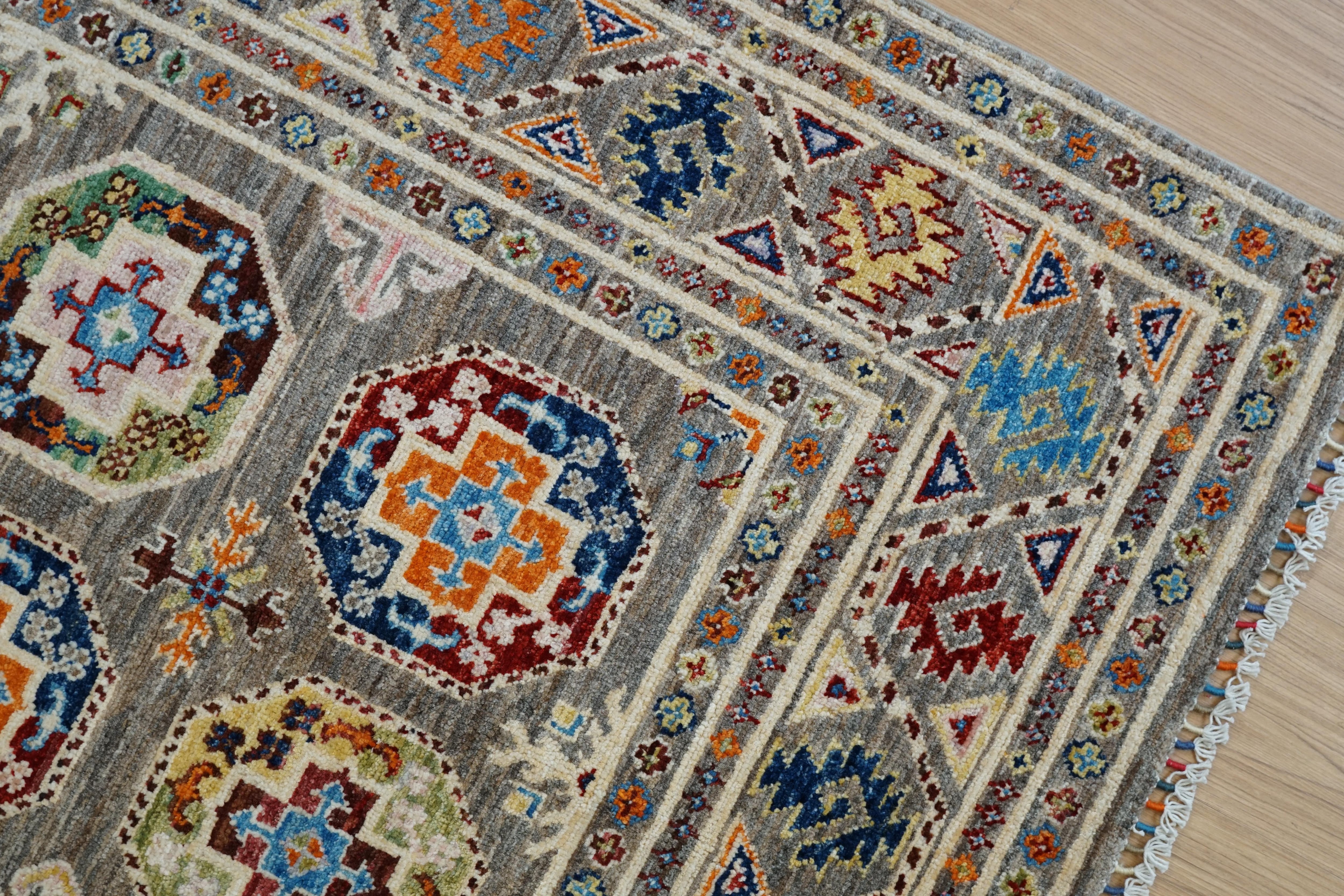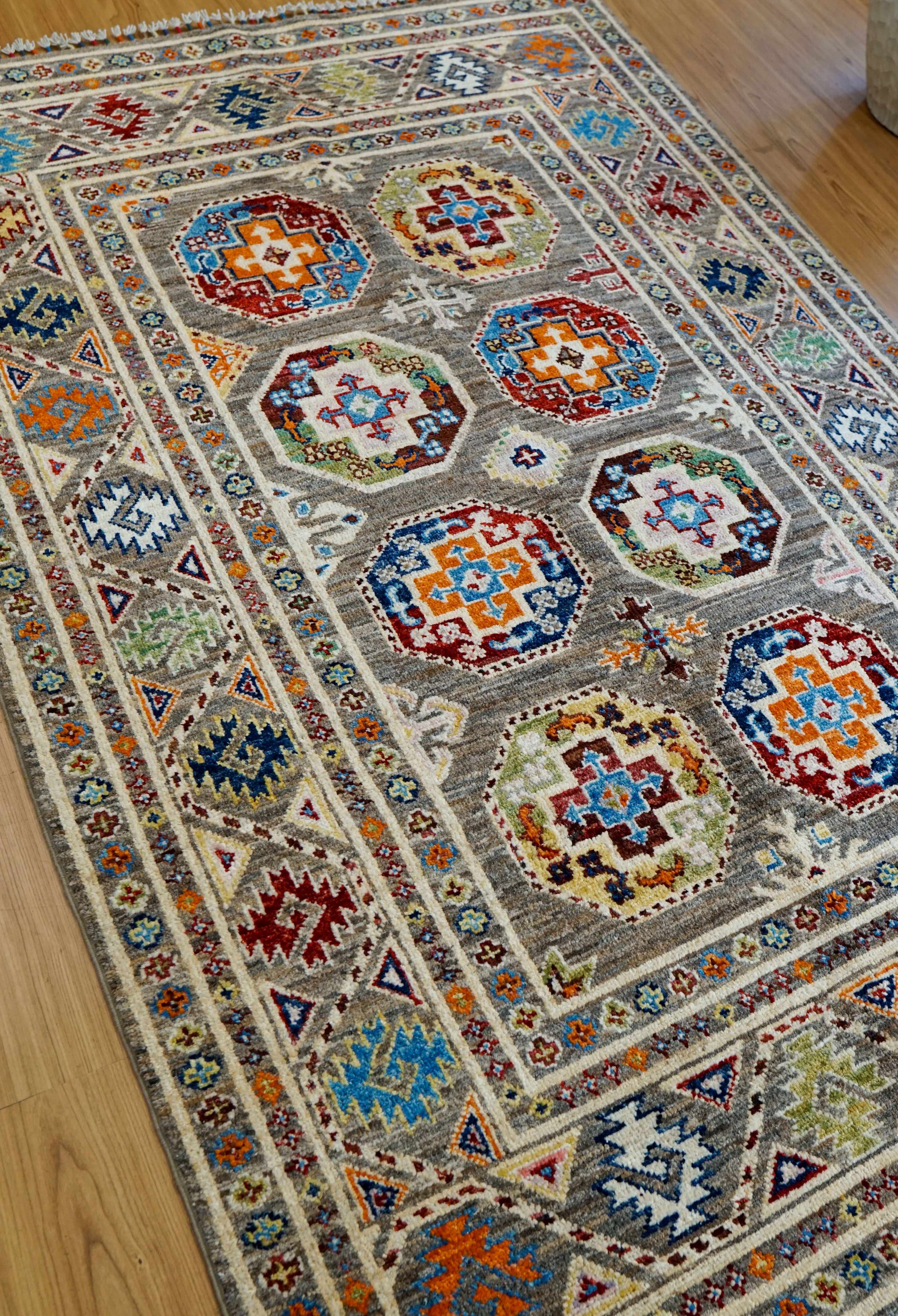 『ガズニーウール』という手で紡いだウールを使用した手織りアフガン絨毯です。