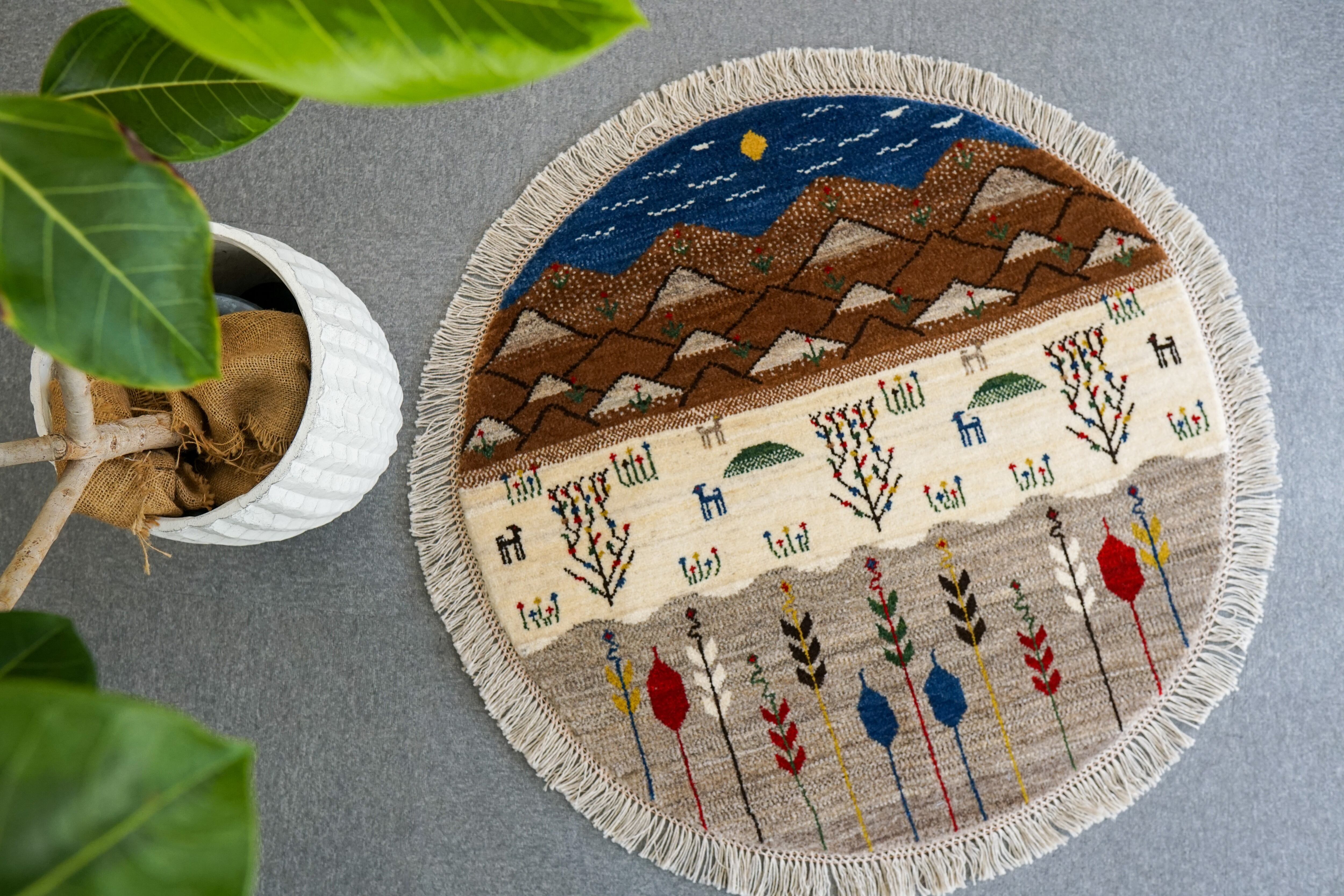 100×100cm ペルシャ手織りカシュクリギャッベ リーズバフト